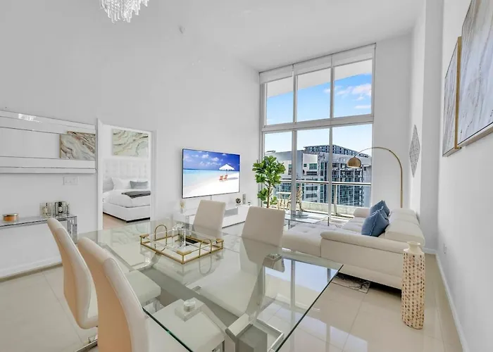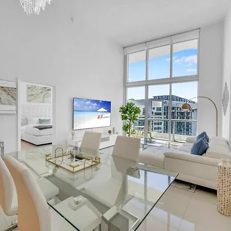 Die Ferienwohnung 40Th Floor High Ceilings Unit At Icon Brickell bietet zudem eine voll ausgestattete Küchenzeile. Die Unterkunft befindet sich in einer 10 Gehminuten Entfernung von der U-Bahn-Station Brickell Metromover.